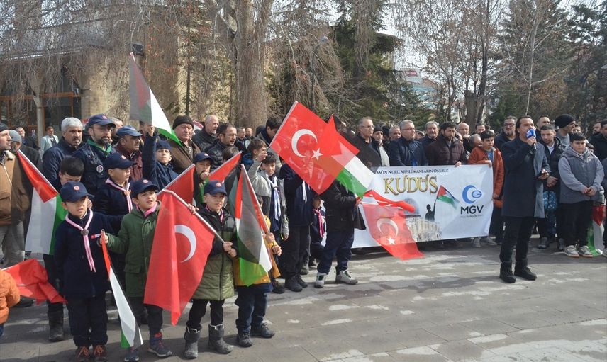Karaman'da, Aktekke 15 Temmuz Demokrasi Meydanı'nda Filistin'e destek açıklaması gerçekleştirildi.