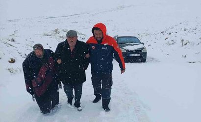 Karaman'da kar yağışı nedeniyle merkez ilçeye bağlı Güldere köyü yolunda iki otomobilde bulunan 4 kişi yolda mahsur kaldı.