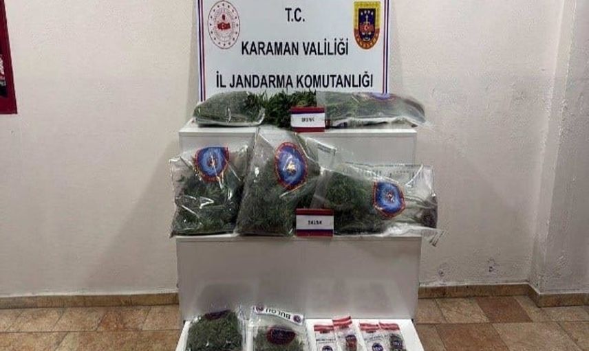 Karaman'da Jandarma Uygulaması: El Yapımı Dinamit ve Uyuşturucu Ele Geçirildi