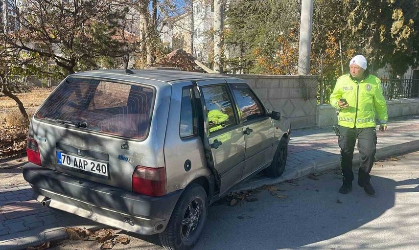 Karaman'ın Çeltek Mahallesi 402. Sokakında meydana gelen kazada, sürücüsünün direksiyon hakimiyetini kaybettiği bir otomobil önce bir yayaya çarptı, ardından kaldırıma çıkarak durabildi.