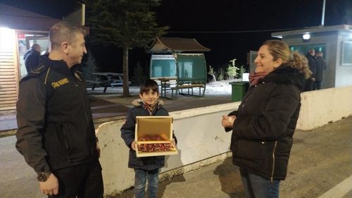 Karaman'da ilkokul öğrencisi Yaman Yücel Metin, yılbaşında görevli polislere çikolata ikram etti.
