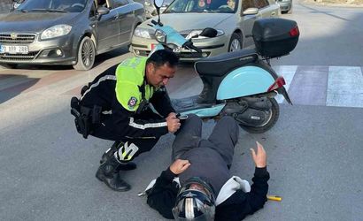 Çarpışmanın etkisiyle yere savrulan motosiklet sürücüsü yaralandı. Olay anında cadde üzerinde görev yapan motosikletli trafik polisi, yaralının yardımına koştu ve telsizden anons geçirerek ambulans çağırdı.