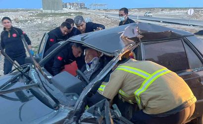 Çarpışma sonucunda otomobil sürücüsü İsa T. ile yanındaki eşi Gülseren T. (54) araç içerisinde sıkıştı. Kamyonette yolcu olarak bulunan bir kişi de yaralandı.