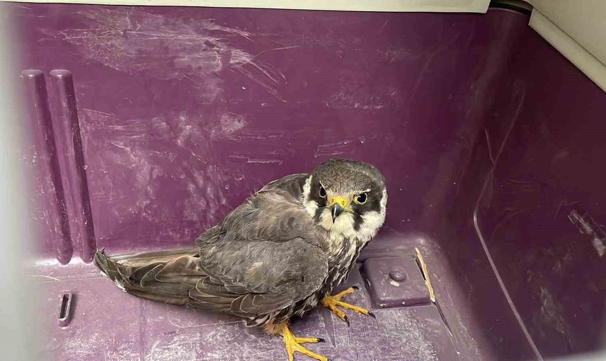Karaman'da vatandaşlar tarafından yol kenarında uçamaz ve bitkin halde bulunan bir boz doğan, yetkililerce koruma altına alındı.