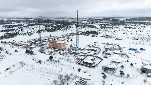 Karaman'da kar yağışı sonrası beyaza bürünen köyler, dronla görüntüleyerek güzel manzaralar ortaya çıktı.