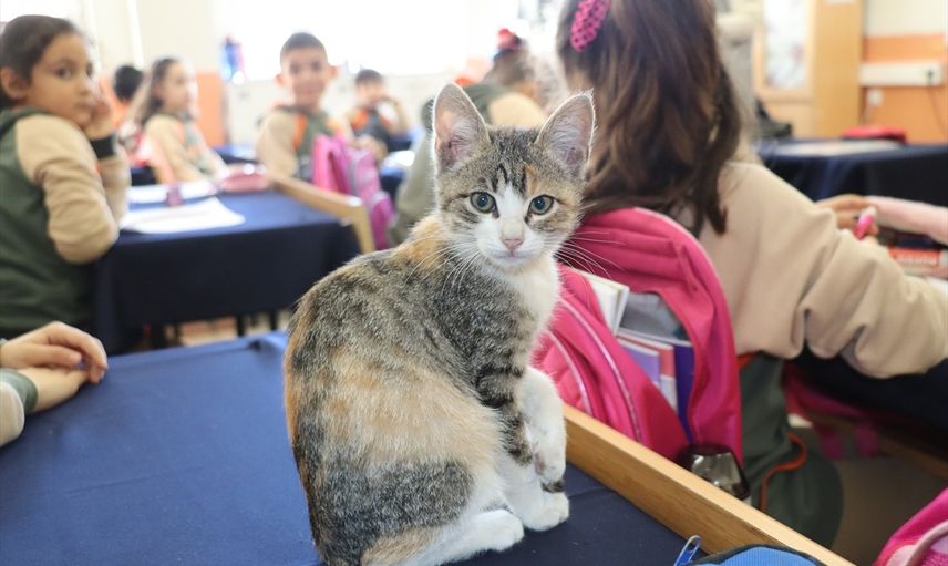 Öğrencilerden 9 yaşındaki Zümra Türkoğlu ise, "Okulun bahçesinde kediyi bulduk. Soğuk olduğu için onu sınıfa aldık ve ismini Karamel koyduk. O da bizim sınıfımızın bir üyesi oldu," ifadelerini kullandı.