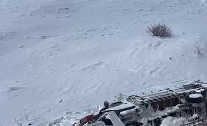 ERZURUM'UN KARAYAZI İLÇESİNDE, ÇEKİCİ, TAŞIDIĞI ARAÇLA BİRLİKTE ŞARAMPOLE KAYDI.
