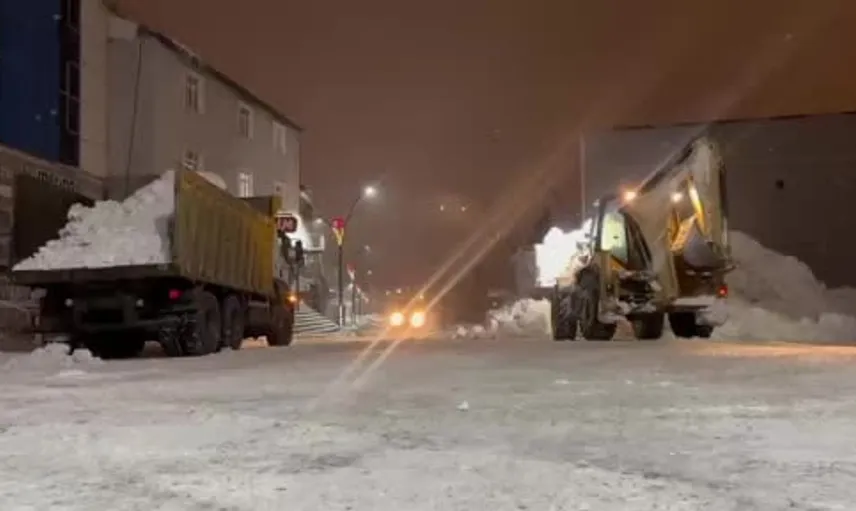 Belediye ekipleri merkezde biriken kar kütlelerini toplayarak ulaşımı rahatlatırken, çalışmaların gece boyunca aralıksız sürdüğü bildirildi.