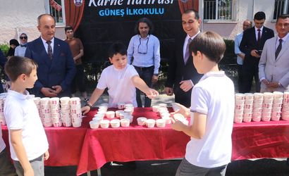 Çankırı'da 23 Nisan'da valilik makamını devralan 4. sınıf öğrencisi Yavuz Çetiner'in (sağda) karne günü okullarda dondurma dağıtılması talimatı yerine getirildi. Dondurma dağıtıma Vali Mustafa Fırat Taşolar (solda) da katıldı.