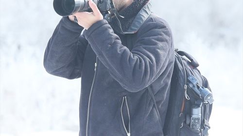 Kars Çayı'nda kar ve buzla kaplı bölgede su samurları görüntülendi. Doğa fotoğrafçısı Berkan Dolapçı, anları kayıt altına aldı.