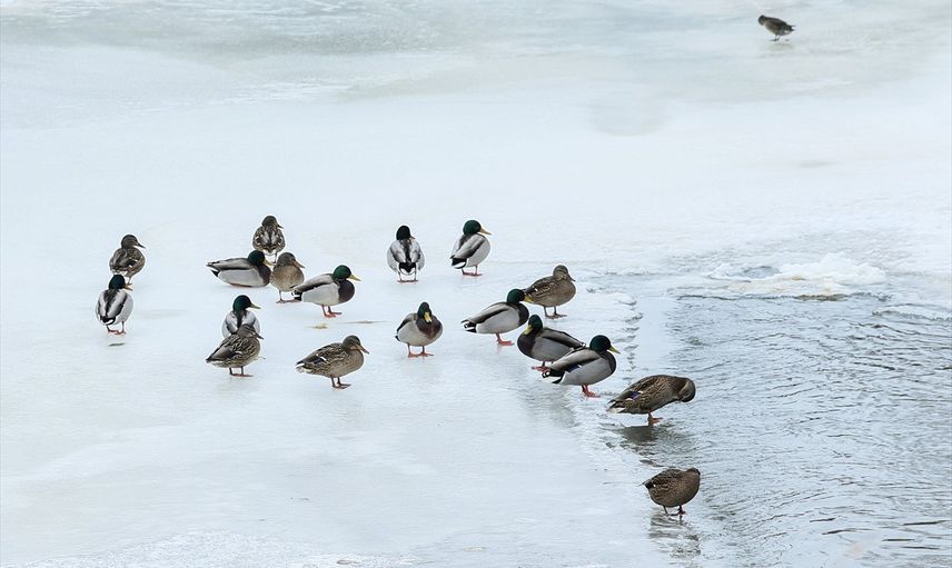 Bölgedeki hava sıcaklıkları gece sıfırın altında 12 dereceye kadar düşerken, birçok göl, gölet ve akarsu da buzla kaplandı. Bu durum, göç etmemeye karar veren yaban kuşlarının ve ördeklerin yaşamını olumsuz etkiliyor. Kars Çayı'nda yiyecek arayan bu ördekler, bölgede devam eden soğuk havanın yaban hayatı üzerindeki etkilerine ışık tutuyor.