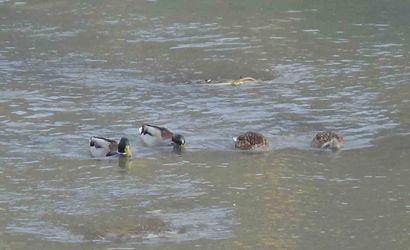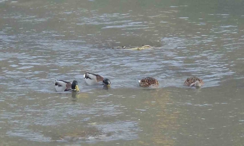 Kars Çayı'nda yüzlerce yeşilbaş ve boz ördek yemlenirken görüntülendi