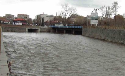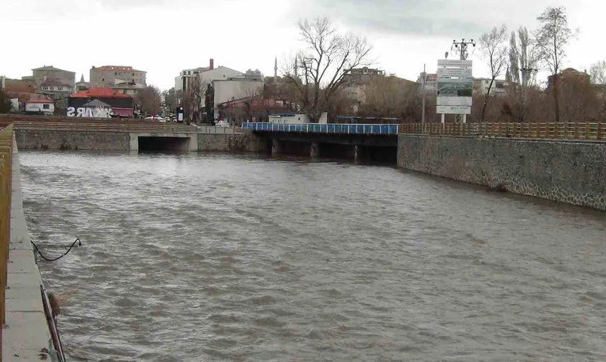 KARS’TA HAVA SICAKLIKLARININ ARTMASIYLA BİRLİKTE ERİYEN KARLAR VE SON GÜNLERDE ETKİLİ OLAN YAĞMURLARLA KARS ÇAYI’NIN DEBİSİ YÜKSELDİ.