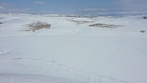 Kars'ta Bayburt Barajı Kar Yağışıyla Beyaza Büründü