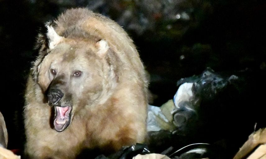 Dünyanın tek göç eden bozayılarının yaşadığı Kars'ın Sarıkamış ilçesindeki şehir çöplüğünde bozayılar beslenirken görüntülendi.