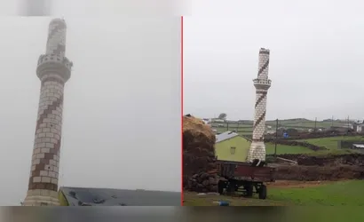 Kars Digor ilçesinde bulunan Mahirbey köyünde başlayan sağanak yağış hayatı olumsuz etkiledi. Sağanak ve dolu yağışın hızlandığı dakikalarda köydeki caminin minaresine yıldırım düştü!