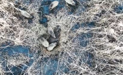 Kars’ın soğuk koşullarında bir göl kıyısındaki sazlıklarda, bir domuz ailesinin yumak halinde uyuma anları drone çekimiyle kaydedildi. Görüntülerde anne domuzun bazı yavrularıyla sıkıca bir araya gelerek uyuduğu, diğer yavruların ise sazlıklar arasında yiyecek aradığı görülüyor.