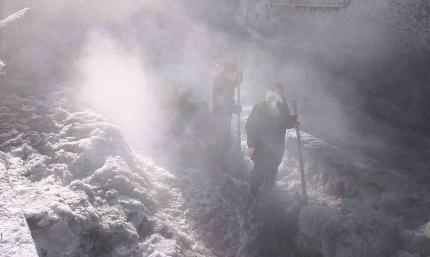 Kars'ta hava sıcaklıklarının eksi 30 dereceye kadar düşmesi, akarsu üzerindeki hidroelektrik santrallerinde (HES) yoğun bir buz kırma mesaisi başlattı. Enerji üretiminin sürekliliğini sağlamak amacıyla santral ekipleri, suyun giriş kapakları ve iletim kanallarını tıkayan buz kütlelerini el ile temizliyor.