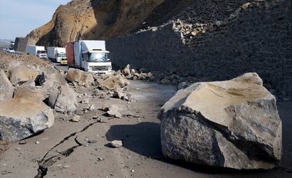 Kars'ın Sarıkamış ilçesinde meydana gelen heyelan, kara yolunda ulaşımı bir süre aksattı. Karakurt bölgesindeki Sarıkamış-Kağızman kara yolunda meydana gelen heyelan nedeniyle büyük kaya parçaları yola düştü.