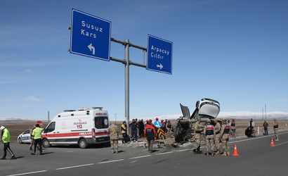 Kars'ta iki otomobilin çarpışması sonucu 1 kişi öldü, 1'i bebek 6 kişi yaralandı.