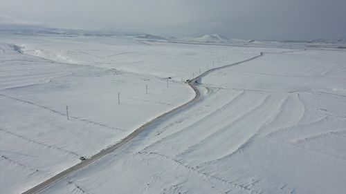 Kars'ta iki gündür devam eden kar yağışı il genelinde etkisini gösterdi, köyler dronla görüntülendi.