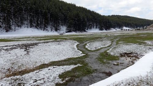 Kars'ta etkili olan kar yağışı yüksek kesimlerde beyaz örtü oluşturdu, 10 santimetre kar kalınlığı ölçüldü.