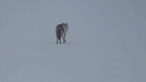 Kars'ta karlı arazide yalnız kurt görüntülendi