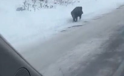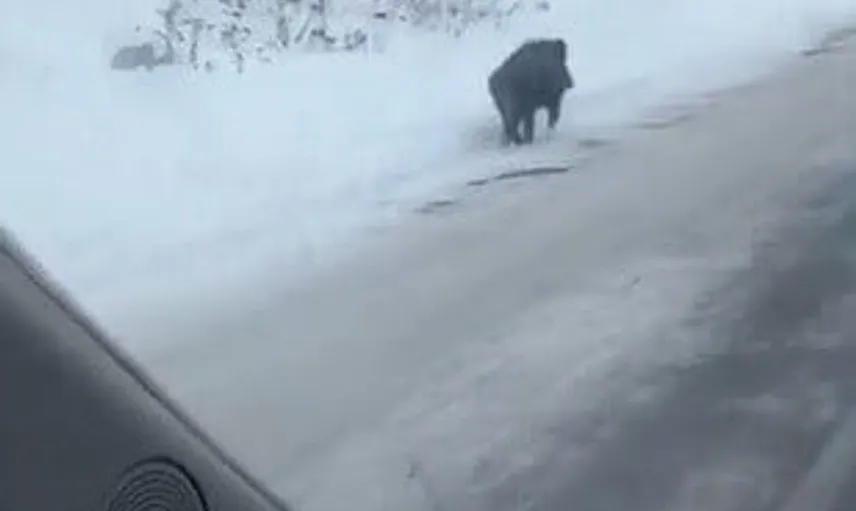Kars-Ardahan-Göle-Balçeşme kara yolu üzerinde seyir halindeki bir sürücü, yol kenarında ilerleyen bir yaban domuzu görüntüledi. Bölgedeki ağır kış şartlarının etkisiyle yiyecek bulmakta zorlanan hayvanın yerleşim yerlerine yakın noktalara kadar geldiği kaydedildi.