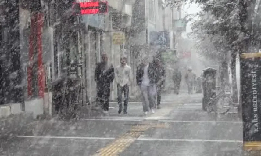 Kars'ta bahar beklenirken kış geri döndü. Öğleden sonra aniden bastıran yoğun kar yağışı, kısa sürede kenti beyaza bürüdü.