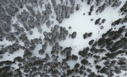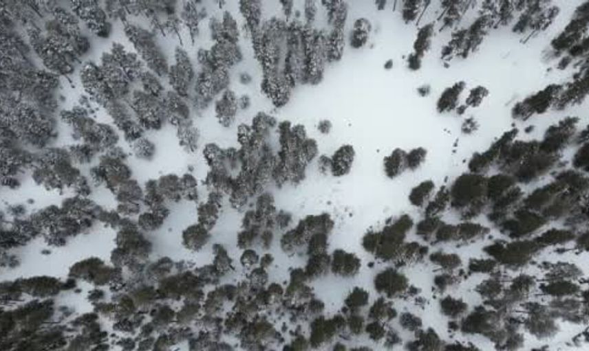 Drone ile kaydedilen görüntülerde ağaçların üzerini kaplayan kalın kar tabakası net şekilde izleniyor. Sarıçam ormanlarının Nisan ayında bu kadar yoğun karla kaplanması, kış koşullarının kentte uzun süre devam ettiğini gösteriyor.