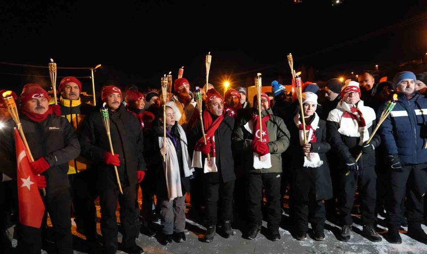 111 YIL ÖNCE SARIKAMIŞ HAREKATI’NDA ŞEHİT OLAN ASKER İÇİN BİNLERCE KİŞİ SOĞUK HAVADA MEŞALE YAKARAK ŞEHİTLİK ANITINA YÜRÜDÜ