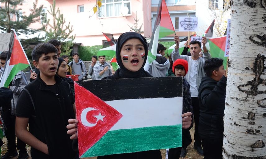 Kars'ta, Filistin'e destek amacıyla "Sarıkamış'tan Gazze'ye Selam Yürüyüşü" gerçekleştirildi.