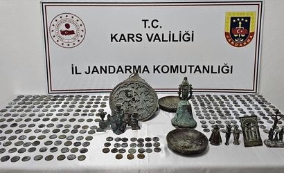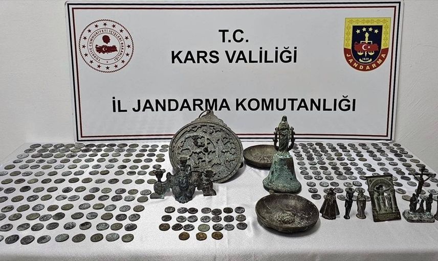 Kars'ın Sarıkamış ilçesinde, tarihi eser kaçakçılığına yönelik operasyonda gözaltına alınan 5 zanlı tutuklandı. Operasyonda, 3 altın sikke, 322 bronz sikke, 1 şamdan, 1 Meryem Ana figürlü çan, 1 usturlap, 8 heykel ve 2 tas ele geçirildi. Tarihi eserler, Kars Arkeoloji ve Etnografya Müzesi'ne teslim edildi.