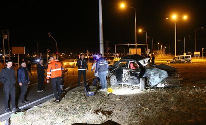 Çarpışmanın etkisiyle tomruk yüklü kamyonun otomobili yaklaşık 50 metre sürüklediği, daha sonra otomobilin refüje çıkarak bir elektrik direğine çarpması sonucu durduğu bildirildi.
