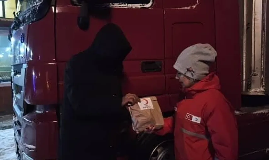 Kars'ta Türk Kızılayı'ndan kar ve tipide mahsur kalanlara sıcak destek