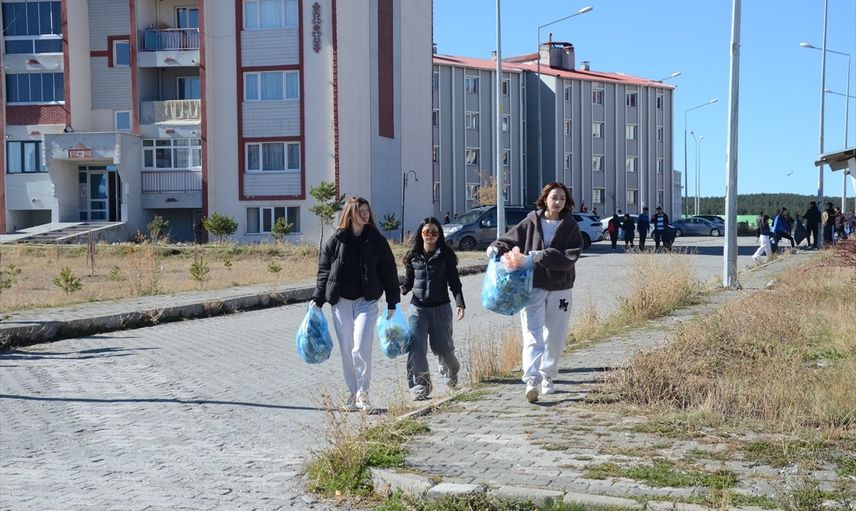Kars'ta üniversite öğrencileri 'Temiz çevre sağlıklı nesil' projesiyle 100 poşet çöp topladı