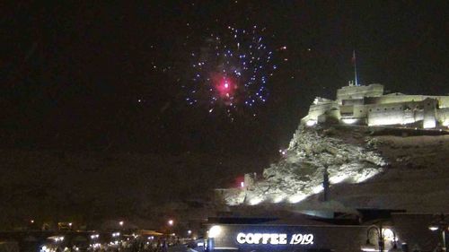 Kars'ta sıfırın altında 10 dereceye kadar düşen soğukta Bedesten ve Kars Kalesi eteklerinde yüzlerce kişi davul zurna eşliğinde halay çekti, 2026'ya havai fişeklerle girildi.