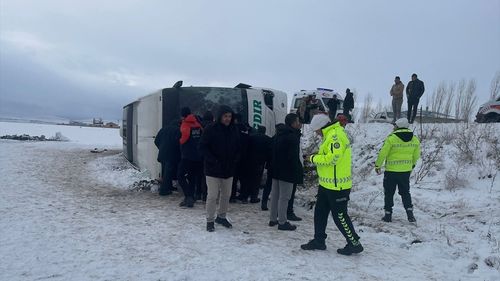 Kars'ta yolcu otobüsü devrildi, 15 kişi yaralandı. Kaza sonrası acil ekipler sevk edildi.