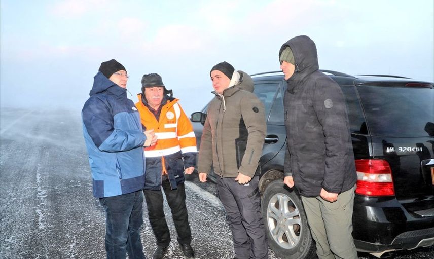 Kars Valisi Ziya Polat, kar ve tipinin etkili olduğu Kars-Ardahan kara yolunda karla mücadele çalışmalarını yerinde inceledi.