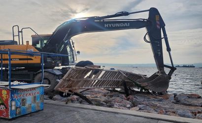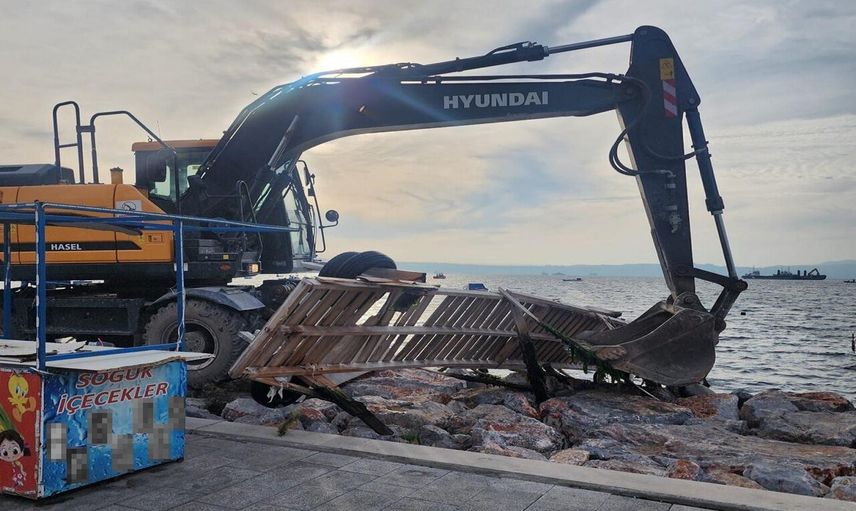 Karşıyaka sahilinde izinsiz platform ve iskelelerin yıkımı başladı
