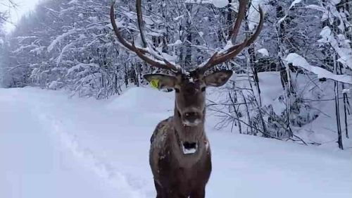 Kartepe'de karla kaplı ormanda kızıl geyik dronla havadan görüntülendi