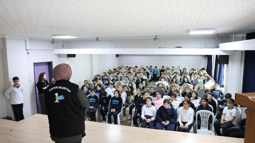 Kartepe Belediyesi Temizlik İşleri ekipleri, Şirinsulhiye İlkokulu ve Derbent Ortaokulu'nda öğrencilere atık ayrıştırma ve geri dönüşüm eğitimi verdi.