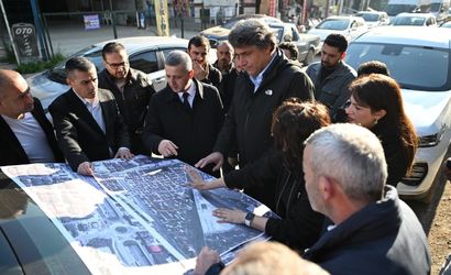 Kartepe Belediye Başkanı Mustafa Kocaman, Büyükşehir Belediyesi Genel Sekreter Yardımcısı Numan Balaban, Kartepe Belediye Başkan Yardımcısı Osman Bina ve birim müdürleri, İstasyon Mahallesi’ndeki şantiye alanlarında teknik ekiple birlikte çalışmaları yerinde inceledi.