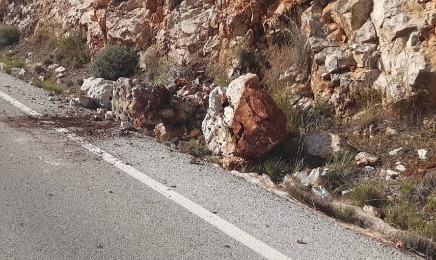 Antalya'nın Kaş ilçesinde D400 kara yoluna düşen kaya parçaları, ekipler tarafından temizlendi.