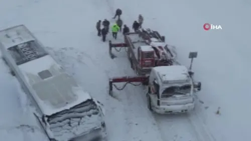 Kastamonu-Araç karayolunda yolcu otobüsü kara saplandı Kastamonu-Araç karayolu üzerinde, yoğun kar ve tipi koşulları nedeniyle bir yolcu otobüsü yoldan çıkarak kara saplandı. Olay bölgesinde ulaşımın güçleşmesi sonucu kurtarma harekâtı başlatıldı. Tahliye işlemi Karda mahsur kalan otobüsteki yolcular, bölgeye sevk edilen…