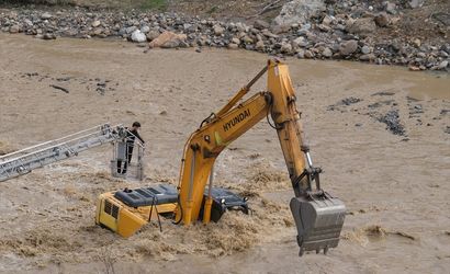 Kastamonu'nun Bozkurt ilçesinde, debisi yükselen Ezine Çayı'nda mahsur kalan ekskavatör operatörü, itfaiye ekipleri tarafından kurtarıldı.