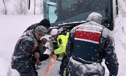 Yolcu otobüsünün, kayarak yoldan çıkması sonucu bölgeye jandarma ekipleri sevk edildi. Ekipler, otobüste bulunan 15 yolcuyu hızlı bir şekilde tahliye ederek, minibüsle ilçe merkezine güvenli bir şekilde götürdü.