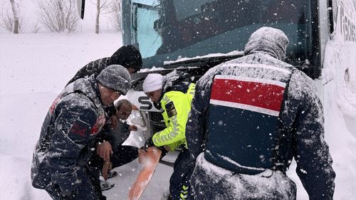 Kastamonu'nun Devrekani ilçesinde kar nedeniyle yoldan çıkan yolcu otobüsü, 5 saat süren çalışmalarla kurtarıldı.