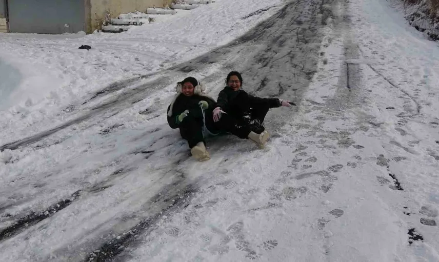 Zeynep Yalçın da kar yağışını beklemediklerini belirterek, "Arkadaşlarımızla birlikte kayıyoruz, eğlenceli oluyor. Herkes sokaklarda oynuyor. Kardan adam yapıyoruz, güzel oluyor. Hava soğuk ama yine de eğleniyoruz. Okullarımız da tatil oldu, mutlu olduk" diye konuştu.