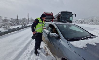 Kastamonu'da, jandarma ve emniyet personeli zorlu kış şartları nedeniyle yolda kalanlara sıcak içecek ve yiyecek ikramında bulundu.